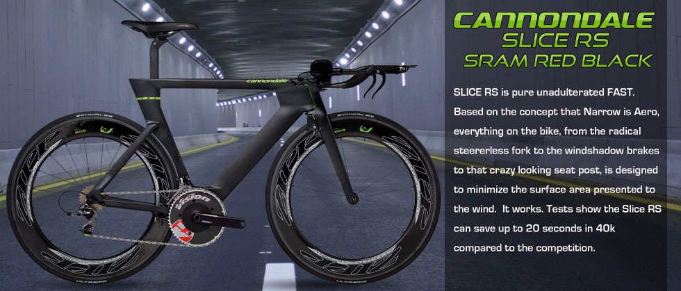 The new Slice RS represents a huge step forward for Cannondale in both design and aerodynamics. With the Slice RS, Cannondale continues it's philosophy of system integration and can be seen throughout this bike. As the flagship time trial and triathlon bike for Cannondale, this bike not only looks fast but is.