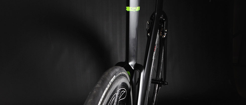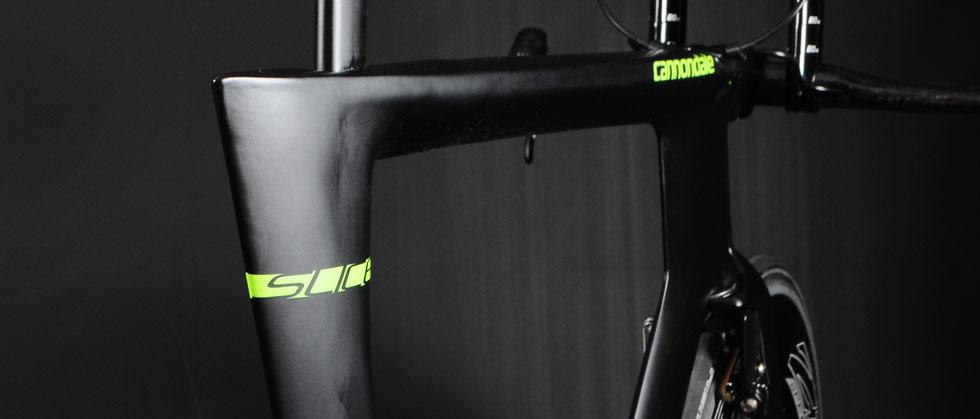 Cannondale engineers took one concept to heart in designing the Slice RS, "narrow is fast". No other bike on the market has such a narrow frontal area as the Slice RS. In order to increase the Slice RS wind-cheating aerodynamics, Cannondale use an external steerer tube... the steerer tube does not pass through the head tube, but instead is mounted in front of the head tube.
